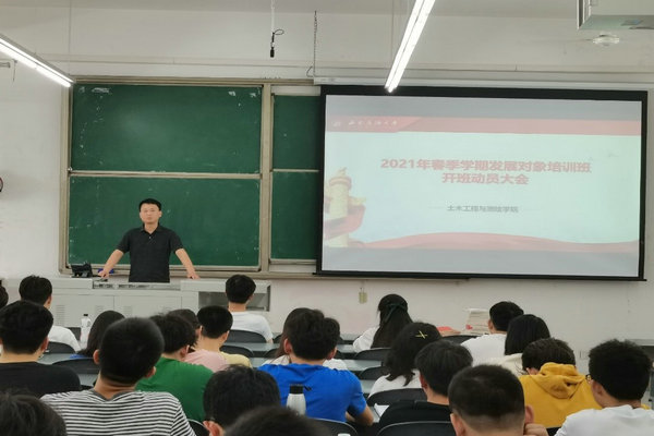 為貫徹落實《中國共產黨發展黨員工作細則》要求,進一步提高發展黨員工作質量,持續推進黨校教育培訓改革創新,為加強和改進黨校管理工作,完善和規范學校黨校發展對象培訓班學員考核工作,切實保證黨校培訓質量。5月9日,土測院于明志樓A308教室舉行了2021年春季學期發展對象培訓班開班動員大會。土測院王治霖老師以及土測院發展對象培訓班全體學員出席參加了本次開班典禮。