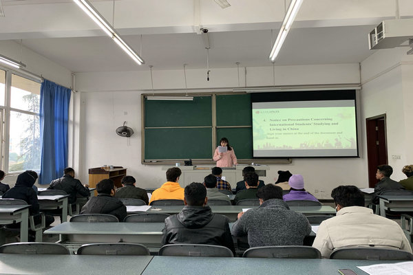 朱珠老師宣讀國際學(xué)生在華學(xué)習(xí)、生活有關(guān)事項提醒告知書