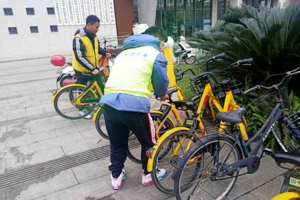 下午三點四十五分,志愿者們在微涼的冷風中到達明志樓樓下的集合點,待所有同學都集合完畢后,相關負責人向同學們說明了此次活動的地點范圍以及注意事項。在分配了具體的清掃任務后,一部分人拿著清掃工具上樓,另一部分人則在樓下擺放自行車。