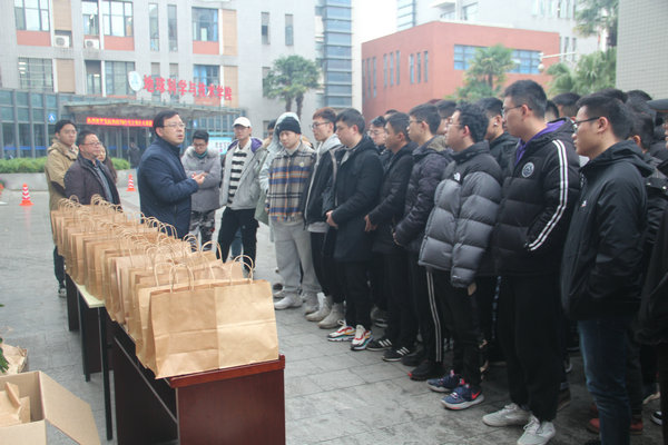 下午三點(diǎn)整,天空中有點(diǎn)小雨,本次派發(fā)活動在邵永波院長的祝福中正式開始了。首先,邵永波院長祝考研同學(xué)們能有一個理想的成績,然后開始給同學(xué)們講學(xué)術(shù)誠信的例子,從大學(xué)老師如何做到學(xué)術(shù)誠信,如果不能做到學(xué)術(shù)誠信的嚴(yán)重后果,又以一個極其優(yōu)秀的學(xué)長,因?yàn)榭荚囌\信問題,留下了處分在檔案中,導(dǎo)致在許多次尋找工作中,都為此吃了虧。隨后邵永波院長又為同學(xué)們考研的學(xué)習(xí)方面進(jìn)行了引航,告訴同學(xué)們在學(xué)習(xí)中有任何不懂的問題都可以找他進(jìn)行幫助,會對同學(xué)們的專業(yè)知識上尋找老師進(jìn)行解答,并告訴同學(xué)們身體是革命的本錢,考研的復(fù)習(xí)也需要注重勞逸結(jié)合,注重學(xué)習(xí)方法和學(xué)習(xí)心態(tài),更要保重身體。在周永華書記關(guān)心同學(xué)們身體和學(xué)習(xí)狀況后,分發(fā)加油禮包活動正式開始了。大禮包包含香蕉、蘋果和手寫的祝福卡片,寓意是祝考研學(xué)子們“心‘香’事成,心‘蘋’氣和,不‘蕉’不躁,定成碩果”。每一位領(lǐng)到加油禮包的同學(xué)都對老師表示了謝意,臉上也同時洋溢著笑容。