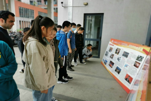 師生共同觀看黨風(fēng)廉政宣傳專欄展板