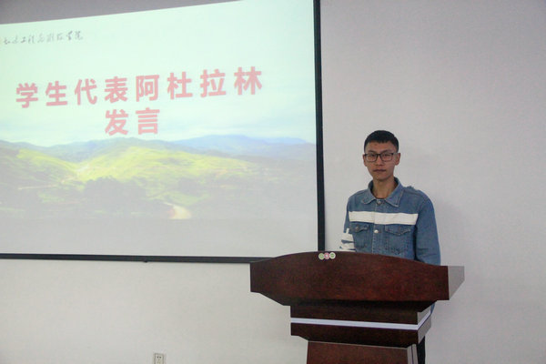 接著,彝族學(xué)生代表阿杜拉林發(fā)言:“作為一名彝族學(xué)生,感謝學(xué)校為我們制定的‘蘇施’計(jì)劃,未來(lái)我要勤奮學(xué)習(xí),積極參加社會(huì)實(shí)踐活動(dòng),加強(qiáng)和家鄉(xiāng)中小學(xué)生的聯(lián)系,利用假期參加支教等活動(dòng),鼓勵(lì)宣傳家鄉(xiāng)學(xué)子們認(rèn)真學(xué)習(xí),走出大山看世界,用自己的所學(xué)和實(shí)際行動(dòng)為彝鄉(xiāng)作貢獻(xiàn),回報(bào)國(guó)家和社會(huì)的培育。”