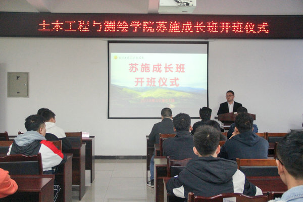開(kāi)班儀式上,土測(cè)院黨委副書(shū)記周永華老師介紹了開(kāi)設(shè)蘇施成長(zhǎng)班的目的與意義,他指出,‘蘇施’在彝語(yǔ)中意為‘優(yōu)秀青年人才’,學(xué)院開(kāi)設(shè)“蘇施”成長(zhǎng)班,助力彝區(qū)脫貧攻堅(jiān),就是為了更好地鼓勵(lì)彝區(qū)同學(xué)刻苦努力,奮發(fā)圖強(qiáng),阻斷貧困代際傳播,回到?jīng)錾剑ㄔO(shè)涼山。該班根據(jù)學(xué)生各年級(jí)特點(diǎn)及學(xué)生實(shí)際,從大一行為習(xí)慣養(yǎng)成,大二素質(zhì)能力培養(yǎng),大三專(zhuān)業(yè)知識(shí)、科技創(chuàng)新能力培養(yǎng),大四就業(yè)、考研、公考為重點(diǎn),合理規(guī)劃,邀請(qǐng)老師、學(xué)長(zhǎng)、同學(xué)、校友、扶貧干部、學(xué)生所在地黨政領(lǐng)導(dǎo)等,從學(xué)業(yè)、素質(zhì)、技能、實(shí)踐、心理等方面進(jìn)行指導(dǎo),助力學(xué)生成人成才。