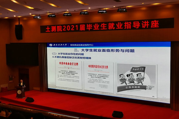 2020年9月14日上午,土測院于圖書館學術報告廳舉行了2017級本科生就業指導。學院鄭文磊老師主持會議,研究生工作辦公室主任錢廣老師為大家進行就業指導。2017級全體本科生參加會議。