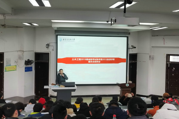 為進(jìn)一步在我校深入開展愛國愛黨愛人民的教育,并且在期末階段營造公平、公正的考試氛圍,2018級土木工程專業(yè)全體同學(xué)于12月23日下午參與愛國教育觀影活動暨誠信考試期末總結(jié)班會,輔導(dǎo)員王治霖主持本次會議。