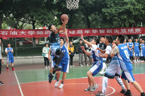 11月4日在一期籃球場,四川省西南石油大學新生杯籃球賽如火如荼地舉行著。本場籃球賽是土建院對戰機電院,此次活動旨在通過籃球賽的形式加強新生的感情交流與身體素質,同時以此為契機,提高學院集體凝聚力。