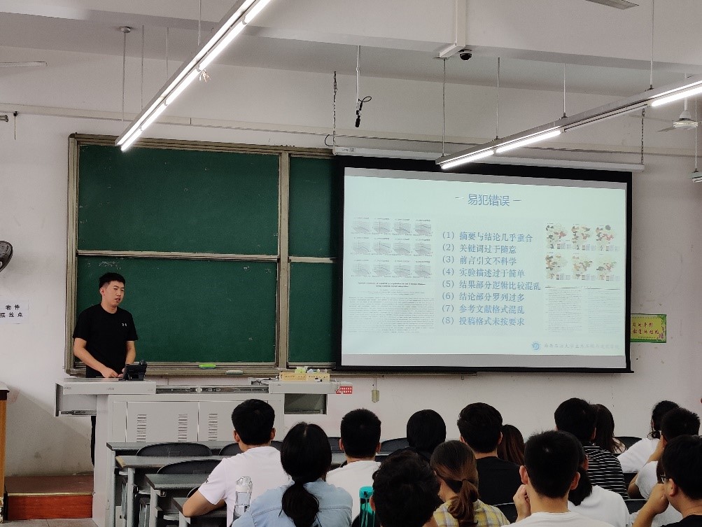 李偉同學主要從論文與研究生生活兩方面給他同學進行了分享,他從寫論文容易犯的錯誤講起,談到文獻查閱、論文撰寫的步驟,以及論文作圖、投稿的要求等等,然后給同學們分享了研究生應該怎么過,從學習和生活上,思想與體魄上為同學們提供了相關建議。葉沖沖同學主要就SCI如何撰寫和投稿進行了細致的講解,給新生提供了許多論文方面寶貴的信息。創新創業如“互聯網+”中,許博浩同學就為何要參加、怎么參加創新創業大賽,談了相關看法與建議,接著,吳韜略同學與同學們交流了數學建模,首先她講解了什么是數學建模,從自身的經驗談起分享了使用的書籍與技能。不積跬步無以至千里,他們鼓勵同學們積極參加活動比賽,綻放出自己的精彩。