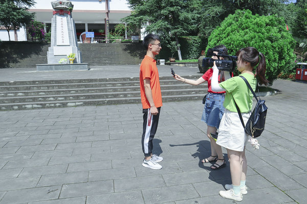 接下來隊員們對前來參觀景點的游客進行采訪,采訪途中還遇見了兩位“特殊”的游客——自重慶結伴騎行而來的黃爺爺和曾爺爺。他們說,此次騎行的終點是劍門關,本來他們計劃走的是另一條路,但在了解到這里有紅軍遺址時便特地改道而來。“我們這一代人,對長征總是有一種特殊的情懷!”黃爺爺在提及長征時十分興奮。