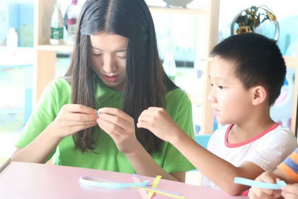 實踐隊今天的活動內容是教小朋友們疊星星和剪紙,用五顏六色的彩紙和精致的手工作品吸引了大家的眼光,在一對一對輔導教學下,孩子們都學會如何疊星星,這充分調動了大家的積極性,讓小朋友們鍛煉了動手能力和折紙的美妙,借此機會激發了小朋友的動手興趣。在活動收尾之際,實踐隊員教會了小朋友明天會更好的手指操,小朋友在聽歌學操的同時期待著美好的明天。