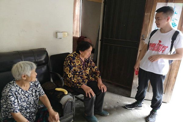 次日,實踐隊在建新村村委會主任曾凡通的帶領下來到了建新村,并拜訪了村里的村民。其中,李奶奶家是最典型的貧困戶,李奶奶是空巢老人,自身患有眼疾,生活難以自給自足,全靠政府的補貼和長期在外打工的兒子維持生計。實踐隊為這些生活有困難的家庭帶去了自己的一點心意,給他們帶去暖意。