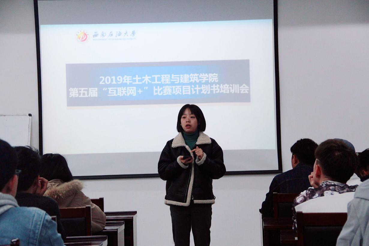 3月11日晚,由土木工程與建筑學院大學生創新創業俱樂部主辦的第五屆“互聯網+”比賽項目計劃書培訓會在明志樓A413舉辦。土建院雙創特邀全國大學生電子商務“三創”比賽評委、連續三屆擔任“互聯網+”四川省總決賽評委,西南石油大學經管院陳曦老師為土建院備賽隊伍做項目計劃書指導培訓。大會由我院雙創指導老師冉玉嘉主持,土建院各備賽隊伍團隊負責人及成員參加大會。