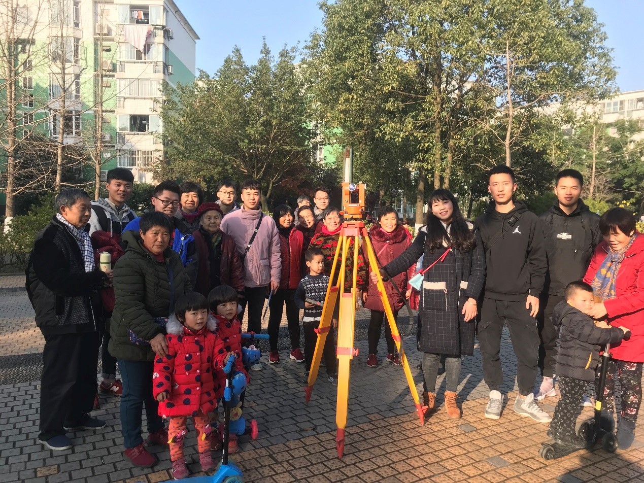 在測(cè)量過(guò)程中,不少小區(qū)居民紛紛上前圍觀,隊(duì)員們也在保證儀器安全的情況下讓居民們過(guò)了一把“測(cè)繪癮”,并對(duì)居民們所提出的有關(guān)測(cè)量的問(wèn)題進(jìn)行了相應(yīng)解答與介紹。