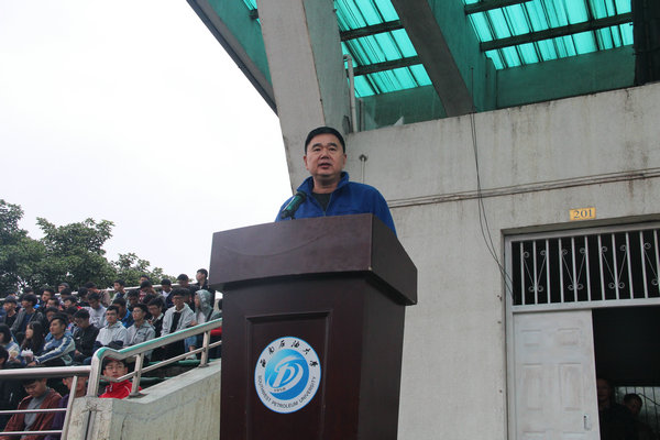 運動員學生代表于主席臺宣誓道,所有參賽運動員將堅決遵守比賽規則,并在比賽中拼搏進取,賽出風格、賽出品質。裁判員代表也同時承諾,他們將堅決服從裁判長指揮,遵守公平、公正、公開三個原則。最后,西南石油大學副校長趙正文宣布運動會正式開幕并預祝活動取得圓滿成功。