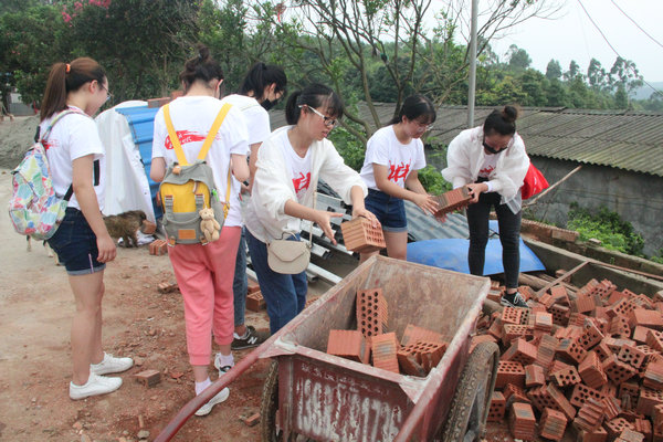 實踐隊于21日上午順利抵達救助中心,救助中心負責人陳女士向隊員們表示了熱烈歡迎。“目前,這里共收養(yǎng)了5000多只流浪貓狗,大約有犬舍28間。但近日的連續(xù)暴雨導(dǎo)致一些犬舍受到不同的程度損毀,急需修復(fù)。此外,許多流浪狗也有不同程度的受傷情況。”陳女士在帶領(lǐng)實踐隊參觀時介紹道。在參觀過程中,隊員們對損壞的犬舍進行了廢墟清理工作并協(xié)助工作人員搬運修繕犬舍所需的材料。