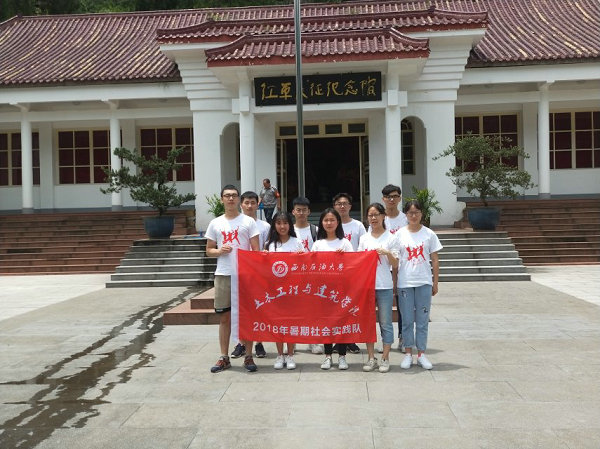 第一天實踐隊參觀了紅軍長征紀念館,實踐隊員們進一步了解到高何鎮是成都市革命老區鎮鄉之一,是紅軍建立蘇維埃政權的所在地。1935年紅軍長征進入邛崍,在高何石塔寺建立了蘇維埃政府。通過參觀實踐隊還清楚地認識到長征的意義,不僅是一次杰出的軍事成就,還是一次具有深遠影響的政治運動。如今,人們習慣地把中國紅軍在長征中表現出的革命英雄主義精神稱為“長征精神”。長盛不衰的長征精神,是不同時期人們的永恒的話題。