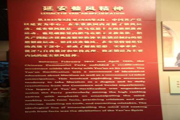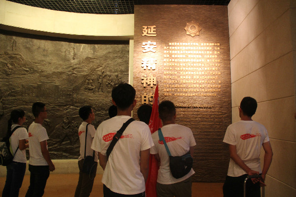延安,是中國革命的圣地。紀念館始建于1950年(另于1973年重建新館),位于寶塔區西北延河東岸,是中華人民共和國成立后最早建立的革命紀念館之一,整個紀念館外觀樸素大方,結構緊湊,高大宏偉,具有傳統的民族風格。首先映入隊員們眼簾的是廣場中央巍然聳立的毛澤東雕像,基座上布有展示江澤民總書記手書的“毛澤東在延安”字樣。展館正門上方懸掛著紅色匾牌,其上有郭沫若1971年來延參觀時題寫的館名。紀念館內有6個展廳,展廳是展示展品的具體載體。展廳大門前有三個大花壇,花草拼成的“實事求是”4字鮮艷奪目。展廳展出大量珍貴的革命文物,再現了毛澤東、劉少奇、周恩來、朱德等人當年在延安的光輝業績。