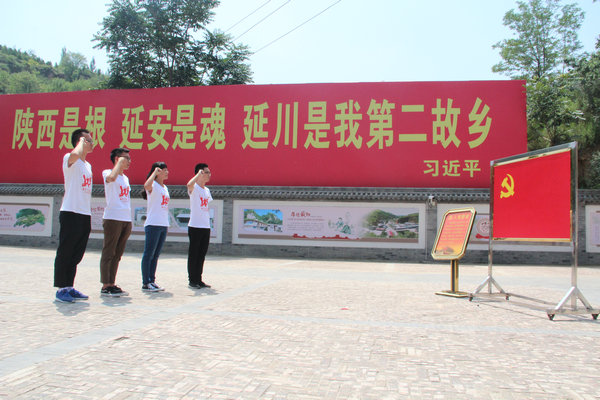 抵達(dá)目的地后,隊(duì)伍首先參觀了村委大院,實(shí)踐隊(duì)中的共產(chǎn)黨員和預(yù)備黨員在鮮紅的黨旗下莊重宣誓,鏗鏘有力的誓詞表達(dá)著他們對黨的莊嚴(yán)承諾。實(shí)踐隊(duì)隊(duì)員黃超做微黨課講解。在村史館中,通過館中展出的梁家河村發(fā)展過程中的紀(jì)實(shí)照片,隊(duì)員們對梁家河村的發(fā)展歷程有了清晰的認(rèn)識。