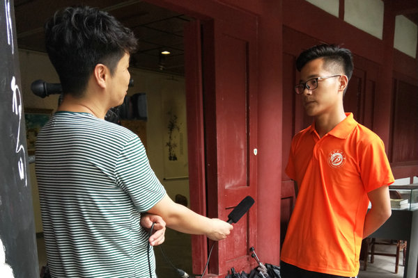 值得一提的是,當天實踐隊還受到了當?shù)仉娨暸_教育欄目記者采訪,提高了本次社會實踐對社會的影響力。參觀之后,全體隊員前往位于李白紀念館中的青蓮詩社,與詩社中人員進行互動交流,共同探討李白文化。詩社全體會員熱情地接待了實踐隊隊員,并對實踐隊舉行了贈書、表演詩詞吟誦、講解吟誦藝術(shù)、題詞等活動。實踐隊全體隊員認真學(xué)習(xí)詩詞中的吟誦藝術(shù),深刻地感受到了中國傳統(tǒng)文化。