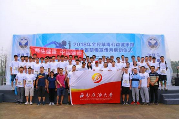 西南石油大學領導及土建院60名學生與省、市禁毒委員會成員單位以及網絡報名全民禁毒健康跑參賽選手800余人參加了本次活動。