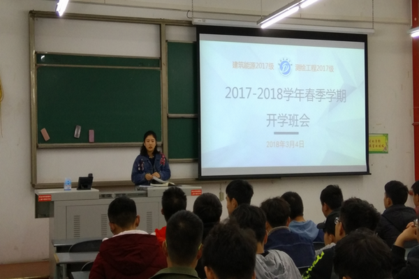3月4日晚,2017級測繪工程專業于明志樓A308成功舉行了新學期開學班會,輔導員張馨藝出席并發表講話。