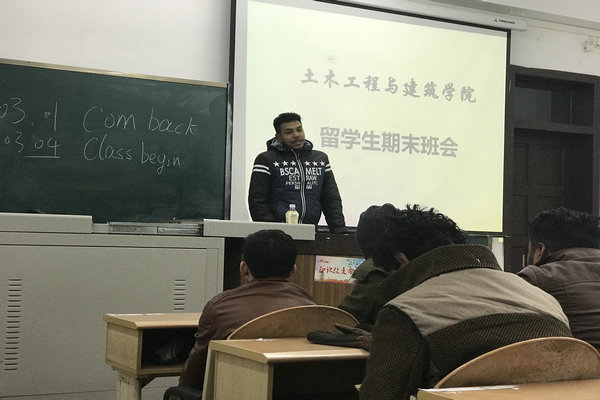 1月15日晚,土建院2017級留學生在思學樓B202順利召開期末班會,本次班會由輔導員孫明遠主持,參加此次班會的為土建院2017級全體留學生。