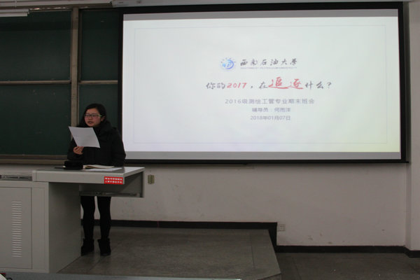 1月7日晚,2016級測繪工管專業在明志樓A301順利召開以“你的2017,在追逐什么”為主題的期末班會,輔導員何雨洋作為主講人出席。