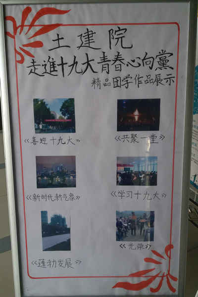 本次活動參賽隊員來自土建院、石工院、經管院、藝術院、材料院、理學院等院系。提交的作品以暑期社會實踐成果為基礎,用組圖或視頻的形式,記錄了十八大以來社會各界的真切改變以及基層人民群眾的真實感受以及十九大以后社會各界人士對于新政策、新理念的理解和解讀,將其拍攝剪輯成了一部4分19秒的視頻,受到老師、同學們的廣泛好評。