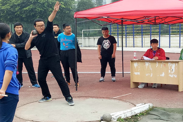 持球、舉球、邁步、投擲,選手們一次次地投擲鉛球,努力讓自己取得更好的成績。前三輪預賽,土建院的三位選手表現穩定,均順利進入決賽。在決賽中,劉琦憑借著出色的個人能力,將球越擲越遠,不斷刷新著自己的最好成績,并憑借著較大的領先優勢奪得冠軍。土建院的另外兩位選手郝鑫瑀和杜明釗也表現出色,分獲三、五名。