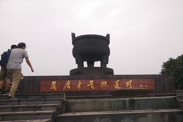 實踐隊參觀思源廣場首先看到的是位于思源廣場中心的中心廣場(水景廣場),其由外圍的圓形水池和中央的方形水池組成,形似一枚古錢幣,象征著財富發達,寓意“共同富?!?。穿過水景廣場,可以看到一座巍峨的寶鼎,那是“實事求是”寶鼎在寶鼎前面有一個跌泉叫思源泉,其利用地形的坡度使水從上方源源不斷的落下,用來表達廣安人民對鄧小平同志的無限崇敬和緬懷之情。