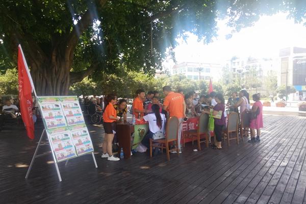 2017年7月6日,“晨曦”暑期社會實踐隊在新都黃桷樹廣場設點宣傳防艾滋、防肺結核知識。市民主動參與了解有關肺結核和艾滋病的知識,