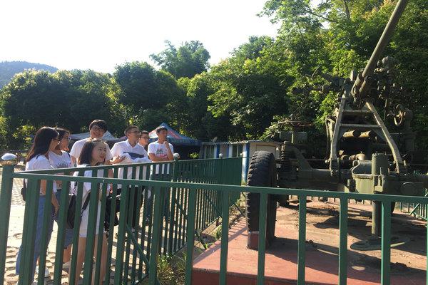 第二天早晨,實踐隊全體隊員正式前往張愛萍將軍故居。進入故居區域后,首先映入眼簾的是兩輛軍區坦克,其威武霸氣的造型震撼了每一位實踐隊隊員,也激發了隊員們的濃厚興趣。隨后,隊員們參觀了用于擺放展覽的作戰武器,它們雖已銹跡斑斑,但透露出了濃厚的歷史色彩,也讓隊員們感受到了偉大的戰斗精神。在參觀神劍書畫走廊的過程中,墻上書法作品中飄逸的字體引發了隊員們的連連感慨,大家都競相模仿。