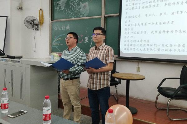 本次精品團會主要以“朗誦者”的形式進行,圍繞“守正篤實、久久為功、青春建功、筑夢中國”的主題開展,旨在弘揚黨“兩學一做”和“一學一做”的先進精神。訪談環(huán)節(jié)通過回顧老一輩的奮斗經(jīng)歷,贊頌了紅色的革命精神;通過與團支書的對話,反映了當代大學生在學習和工作中始終跟黨走的信念。伴隨著美妙的小提琴旋律,《我愛我的祖國》被深情地演奏,被熱情地贊頌。在最重要的朗誦環(huán)節(jié)中,每位朗誦者都用他們最誠摯的敬意賦予給文字最深刻的感情,使得觀眾們?yōu)樗麄儷I出掌聲。兩位輔導員代表周永華、王睿喆也在最后獻上深情的朗誦,訴說了他們當輔導員一路以來的心路歷程,在場的同學們也獻出了他們最熱烈的掌聲,現(xiàn)場的氣氛達到高潮。