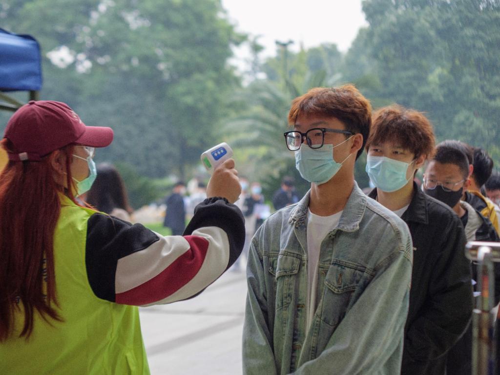 早上8點,2022級輔導員冉玉嘉、曾志剛老師帶領志愿者們全部就位,指導新生測完體溫后,排隊進入大廳,按照具體流程進行報到。