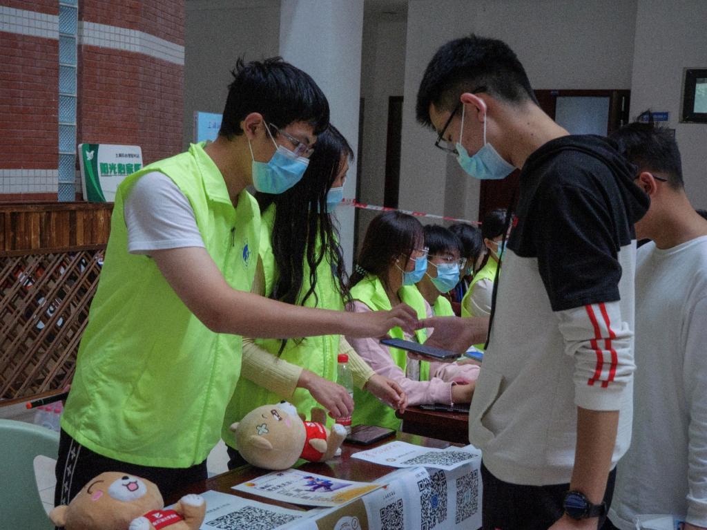 (志愿者引導新生完成學院新媒體平臺關注的相關工作)