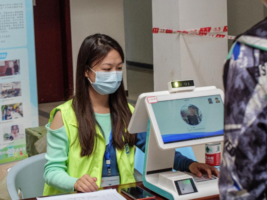 首先通過身份證進行人臉識別,然后簽字確認。接下來志愿者收取錄取通知書復印件、身份證復印件等相關材料、并分發學生手冊給新生們。最后在志愿者的引導下掃描二維碼,關注土測院易班、微信公眾號、微博等新媒體平臺。