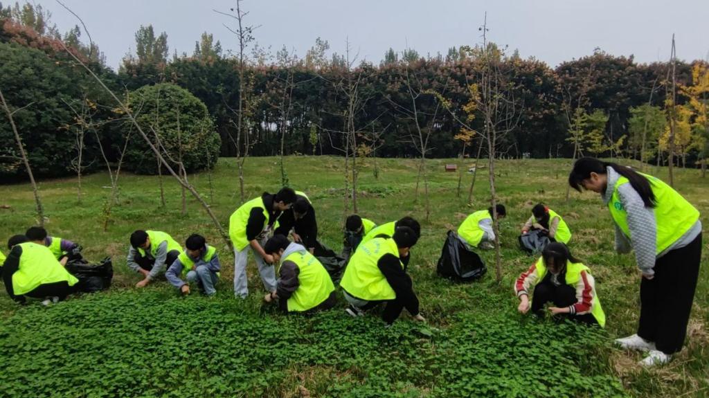 下午兩點半,志愿者們在明志樓A區(qū)集合并簽到完畢。到達指定地點后,部長向志愿者們說明了此次活動內容并給大家分配了任務。有了清晰的任務目標后,志愿者們便在各自負責的區(qū)域開始了維護工作。此時陽光讓草地變得略微炎熱,但草地上除草的聲音仍此起彼伏,大家都在聚精會神地工作著。不一會兒,志愿者們的手上都沾滿了泥,大家的臉上卻依然洋溢著笑容。一番忙碌后,荒草萋萋的學子林煥然一新,深秋的學子林也有了獨有的意境。活動結束后,志愿者們把集中在各個位置的雜草打包帶走。