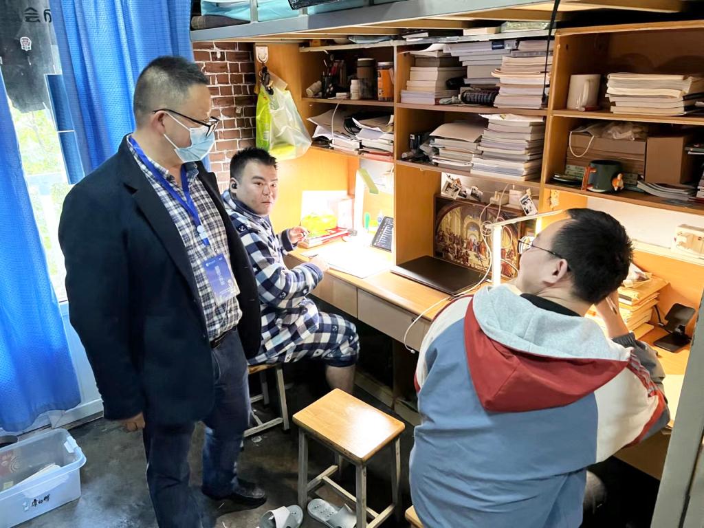 隨后,周永華、陳偉老師來到學(xué)生宿舍,在宿舍中與同學(xué)們親切交談,詳細(xì)詢問同學(xué)們在校生活、學(xué)習(xí)狀況,提醒同學(xué)們在宿舍要注意用電安全、保持衛(wèi)生整潔、增強安全意識,叮囑同學(xué)們要遵循學(xué)校疫情防控規(guī)定和相關(guān)要求,做好防護措施,強調(diào)佩戴口罩的重要性和必要性,建議同學(xué)們要根據(jù)自身情況制定合理的學(xué)習(xí)計劃,合理分配時間和精力,注意勞逸結(jié)合,注意作息,通過自己的努力實現(xiàn)全面發(fā)展。