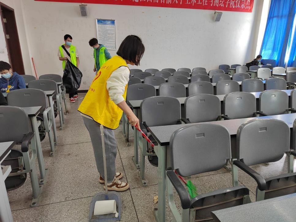 下午兩點半,志愿者們準時到達明志樓下集合。在負責人說明打掃區域和相關注意事項后,大家拿著掃帚,垃圾鏟,抹布等清掃工具前往教室進行清掃。志愿者們有的清掃地面上的垃圾,有的彎腰撿走抽屜里的紙屑和空瓶,還有的志愿者對講臺上的粉筆盒和書本進行擦拭清理。志愿者們為不影響教室里的同學們自習,快速、有序、安靜地進行打掃。在大家的共同勞動下,教室變得干凈,明亮。清掃活動不僅讓我們學習環境變得整潔,同時也培養了同學們不亂扔垃圾,愛護校園環境的好習慣。