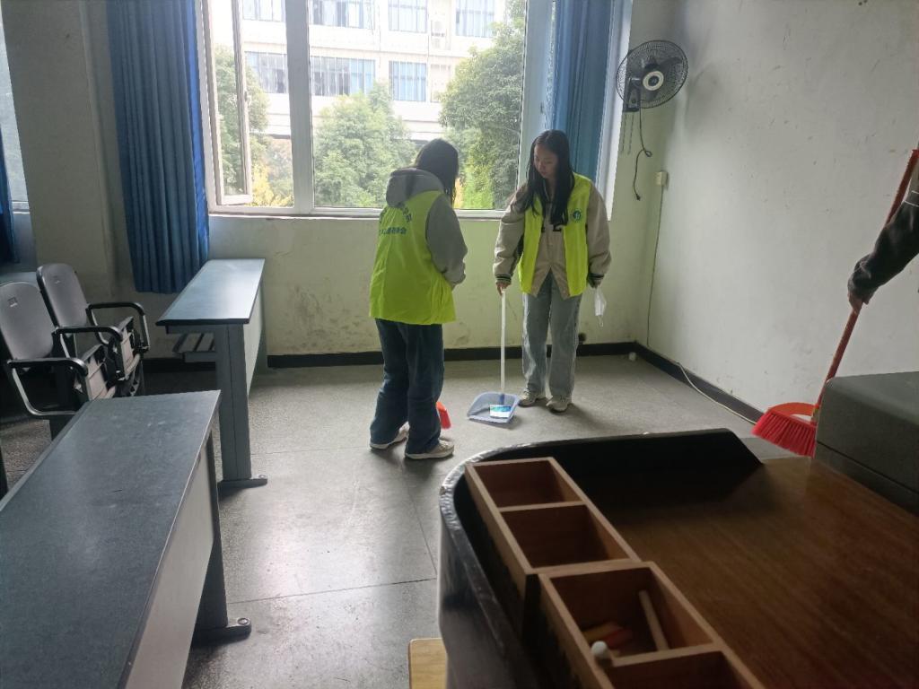 下午兩點,志愿者們在明志樓下集合簽到,穿上志愿者馬甲,拍完合照后進行分工,在保潔阿姨的帶領下,他們拿上掃除工具邁著激昂的步伐前往明志樓A區二樓清掃教室,互相配合,協調開展工作,呈現在大家眼前的是煥然一新的教室。他們在活動過程中不怕苦不怕累,使得清理活動高效、順利完成,提高了大家參與志愿活動的積極性,營造了愛護衛生的氛圍。