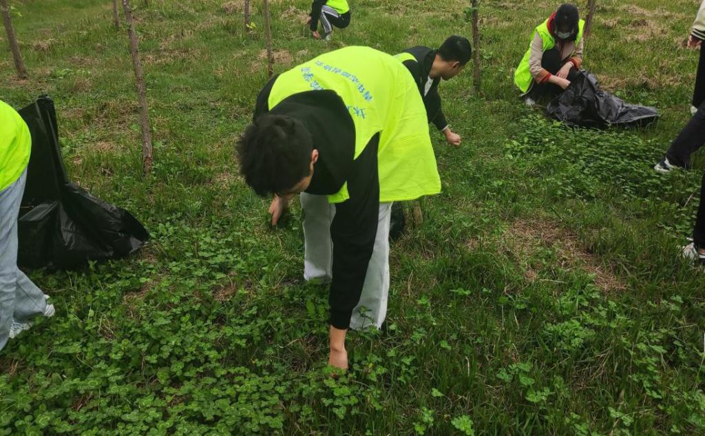 4月14日下午兩點半,在負責人分派好任務后,同學們拿好工具,前往活動地點,分組進行活動。學生們在學子感恩林內進行勞動,在學子感恩林里進行義務維護,這不僅是一項對校園環境整治有幫助的活動,也是對學生思想品德修養方面的教育。志愿者們用鋤頭將銀杏樹旁較大的雜草剔除,用鐮刀將小的雜草割除,其他志愿者們用手拾撿垃圾和落葉。大家有條不紊地清理著林中的雜物,每個人都認認真真地做著勞動。在大家的共同努力下,學子林由雜亂無章變得整潔有序。