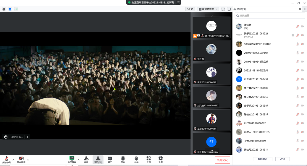 參加活動的同學們早早在會議等候,下午三點整,在主持人吳子怡的引導下,活動如約進行。活動過程中,不少同學們在評論區積極探討這部影片給他們帶來的感動,振奮。也有的同學在評論區交流自己的創新故事,收獲不少的點贊和鼓勵。