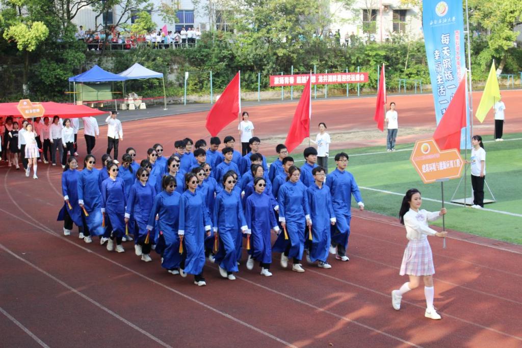 在本屆運動會上,經過學生報名,學院統一組織訓練,共有100名運動員參加比賽、100多名同學參與課間操和專業方陣展示。開幕式上,學院學子精神昂揚,方陣展示風格多樣,團隊配合默契,課間操表演充滿青春活力。