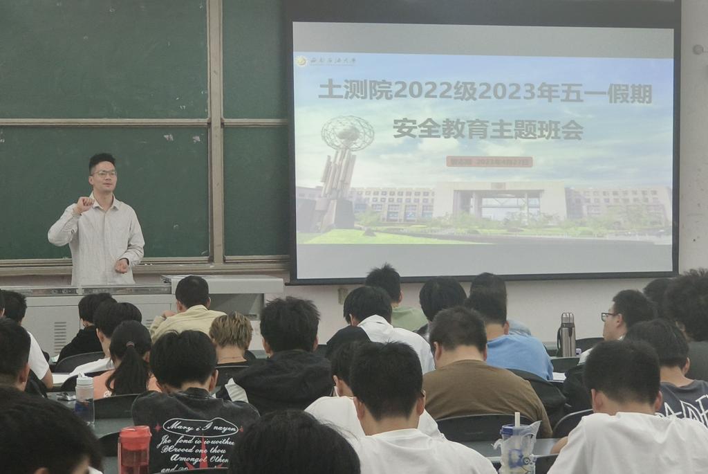 “五一”國際勞動節即將來臨,為加強學院安全教育工作,提高學生安全意識,落實假期安全防范的各項工作,學院2022級全體學生“五一”假期安全教育主題班會于4月27日-28日晚上19點分別在思學樓B110(土木工程專業)、明志樓A308(測繪工程與工程管理專業)召開。本次班會由土木工程與測繪學院2022級輔導員曾志剛主持,分別從留校學生安全和節假日安全兩個方面展開。