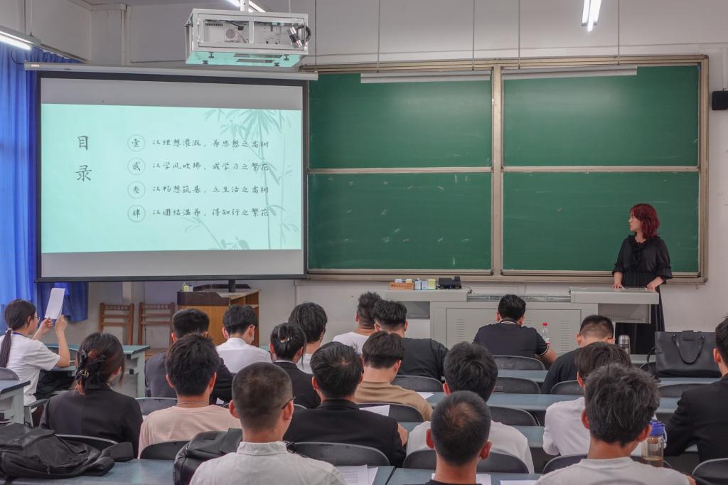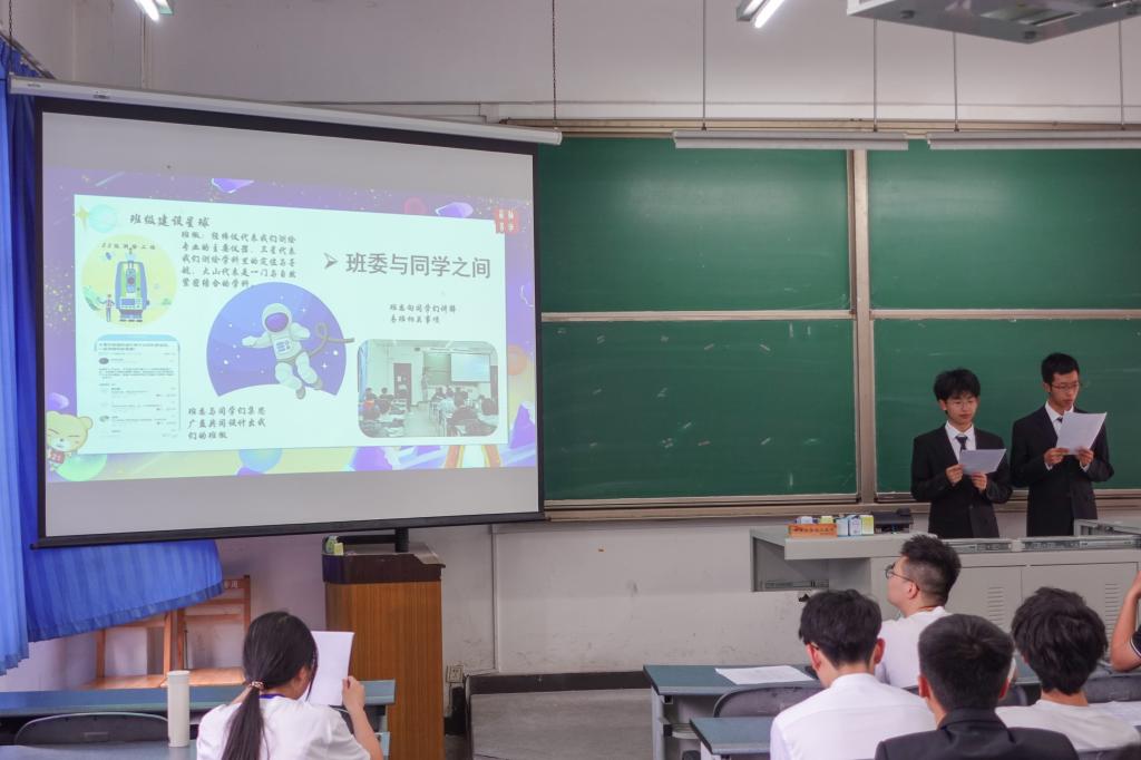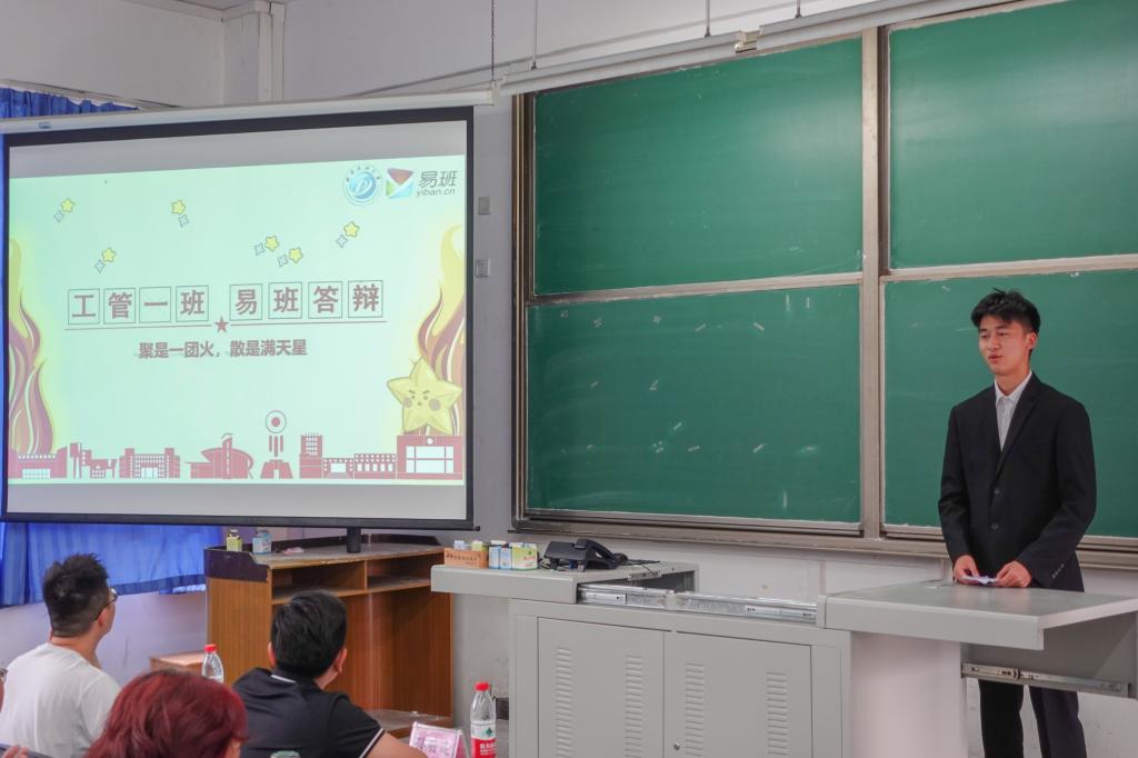 緊接著上臺答辯的是工程管理2022級1班。答辯選手先介紹了班級易班建設的詳情,以“易樓高百尺,手可摘星辰”為題對易班建設進行了介紹。答辯人形象地將易班建設工作分為五個部分,分別是:德育之星,厚德載物;智慧之星,智周萬物;運動之星,身輕體??;美育之星,花辰月夕;勞動之星,有勞有得。其精神分別在于:形成良好的品德,培養品性;學習為主要思想,挖掘潛力;身體是革命本錢,建強體魄;貫徹美育新思想,辨識真美;強韌堅定優品格,勞有所得?,F場老師和同學在其講解下對這個有愛、積極的集體有了良好的印象,紛紛鼓掌。