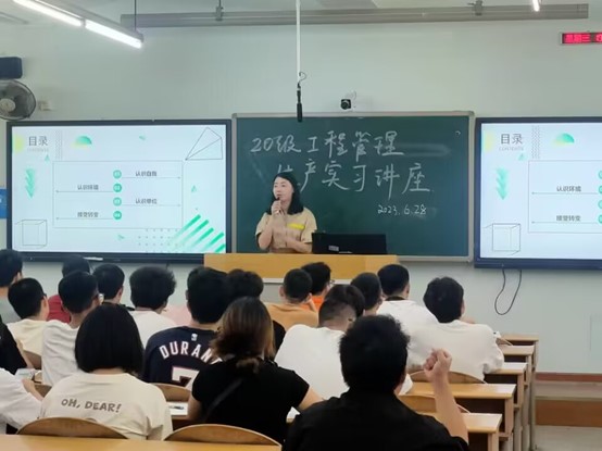 為讓每一位同學認識到生產實習的重要性,了解工程中的施工環節,熟悉施工工作的任務、方法、要求和內容,并進一步驗證、加深和鞏固課堂學習的理論知識,2023年6月28日,土測院2020級工程管理專業在思學樓A215順利召開生產實習動員大會。工程管理教研室的劉鳳云老師、劉行老師、盧虹林老師、西勘院的李頡經理和宋菲菲經理以及20級工程管理專業全體同學參加了會議,會議由劉鳳云老師主持。