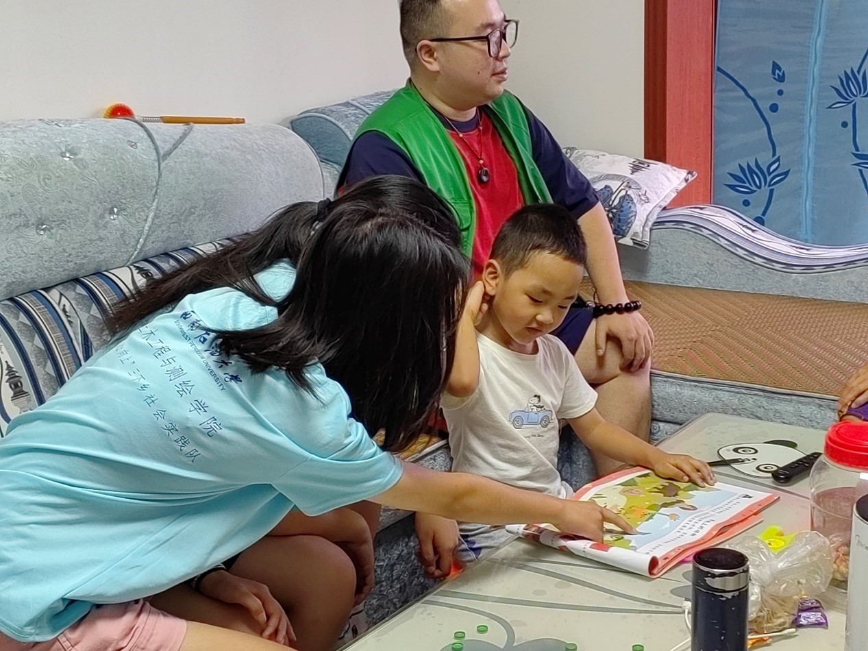 當日下午,在社區工作人員的帶領下,實踐隊員們來到留守兒童家中,通過與留守兒童的奶奶交流了解到:父母常年在外務工,并且留守兒童的爺爺又在不久前離世,生活壓力因此加劇。在活動期間,實踐隊員們十分留意留守兒童的心理狀態,與留守兒童一起玩玩具,通過共同玩耍來走進孩子的世界,引導孩子對情感的表達,增進與孩子之間的感情,讓留守兒童感受來自社會的溫暖,并輔導孩子完成課后作業,增加孩子的求知欲,減少孩子對學習的恐懼,增強孩子的興趣,有意識地培養孩子的學習習慣?;顒幼詈螅鐓^贈予留守兒童書包以及文具,對留守兒童家中的老人進行慰問,并宣傳國家對留守兒童的頒布相關政策。