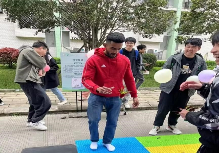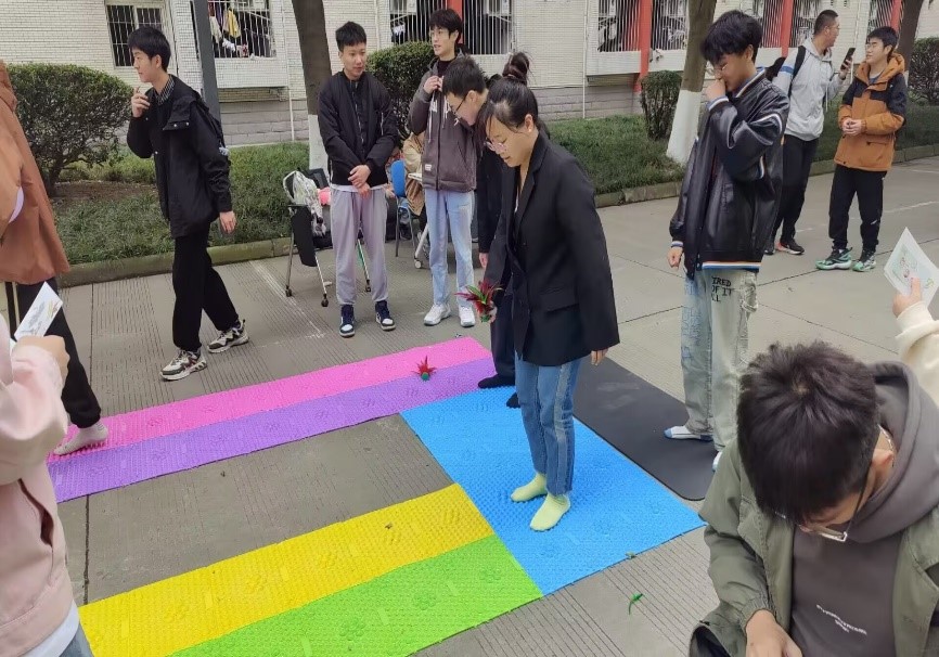 而由土測院負責的“指壓板挑戰”是最為困難但也是最有趣的,同學們在忍受指壓板帶來的疼痛的同時需要完成十次跳繩和來回胯下運氣球才算成功。這極具挑戰性的活動吸引了大量同學的青睞,它不僅鍛煉了同學們的勇氣,還讓大家明白了只有內心強大才能克服困難的道理。通過參與本次活動,同學們釋放了內心的壓力和情緒,與自我進行了一場深刻的對話,讓他們在這輕松愉悅的氛圍中成長學習不失為一種好的心理健康教育方式。