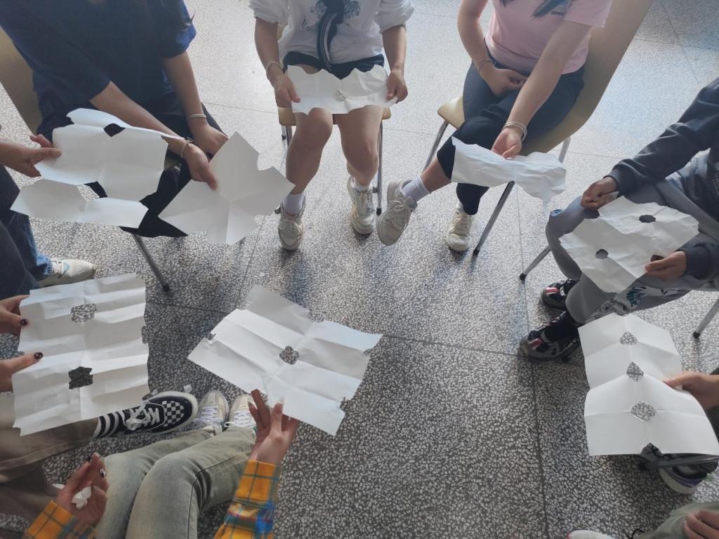 活動圍繞撕紙、答非所問、反應(yīng)感知三個游戲展開。首先,參與者根據(jù)主持人的口令將所拿的A4紙撕掉一個角,在反復(fù)重復(fù)的過程中,參與者可通過撕紙來控制情緒,緩解壓力。接著,答非所問游戲來鍛煉參與者的反應(yīng)能力,在游戲過程中培養(yǎng)自信心和提高人際交往能力。本次活動以反應(yīng)感知游戲結(jié)尾,參與者在游戲中能夠認識更多的同伴,鍛煉反應(yīng)能力,提高默契。活動過程中會以表演節(jié)目作為懲罰,不僅活躍了游戲氣氛,而且為其提供了一個展示自我,提高自我,增強自信心的機會。