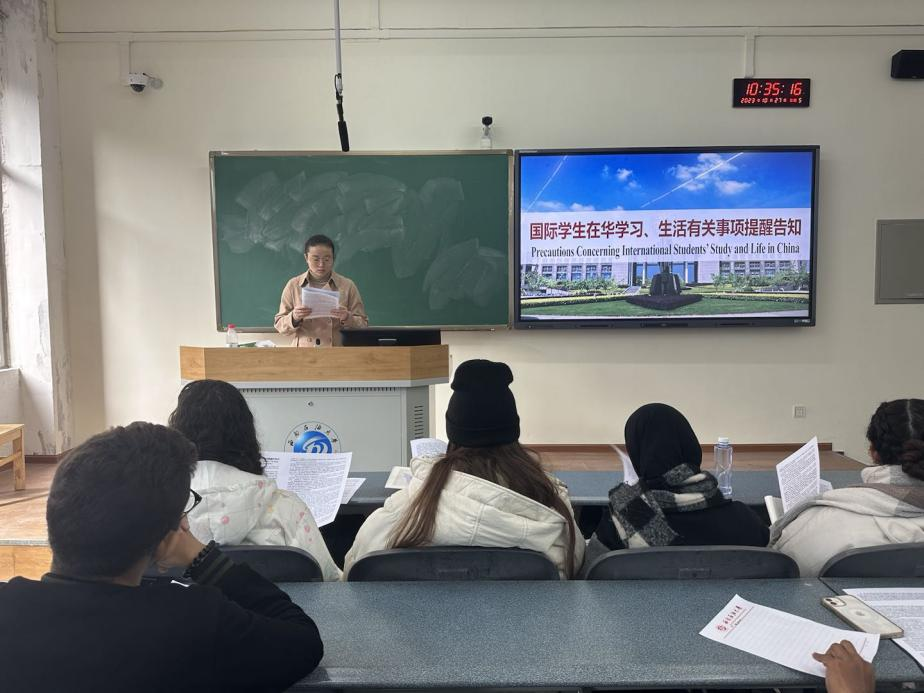 為了維護學校良好的學習、生活秩序,保護國際學生的人身安全,保證國際學生能夠順利完成學業,2023年10月27日上午10.30,我院召開研國際學生在華學習、生活有關事項,本次班會由輔導員況晏老師主持,土測院國際留學新生參與。