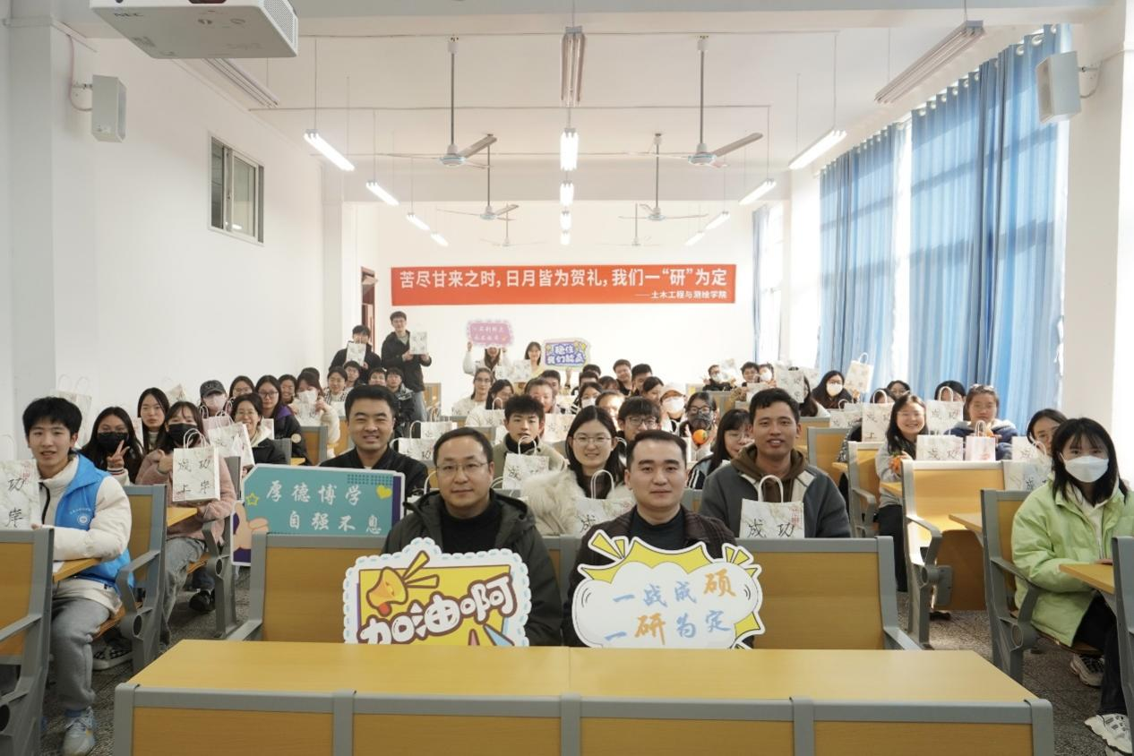 寒冬送暖,“研”途相伴。2024全國碩士研究生考試日益臨近,為緩解考研學(xué)子壓力,增強迎考信心,12月14日,土木工程與測繪學(xué)院(南充)在第三教學(xué)樓3306開展“考研送溫暖”活動,學(xué)院副院長潘海澤,學(xué)生黨支部書記牟彩偉、龍湘川、江林參加活動,學(xué)生辦公室(團(tuán)總支)副主任張運鑫主持本次活動。